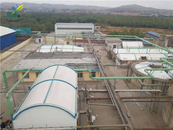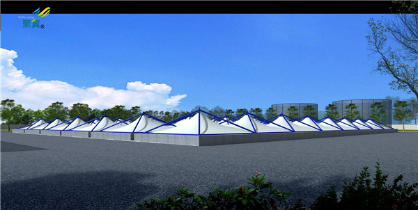 3.適用于大跨度池體:膜材質輕,抗拉強度高,而且經過特殊光固化處理,對防腐、防霉、防菌都變得十分優越。對大跨度使用上具有優勢,造型多樣,美觀新穎;