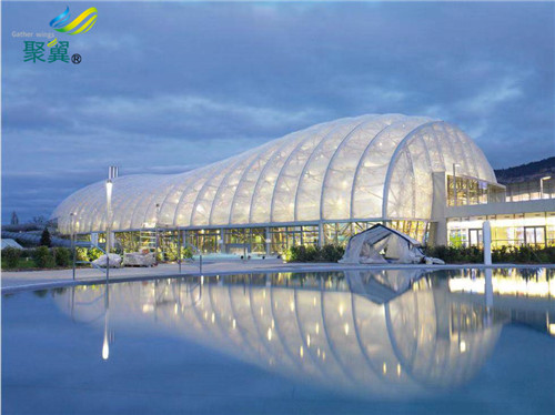 在日后的發展過程中,膜結構表現出了不少特有的優勢,如阻燃性能好、外型新穎美觀、自重輕、跨度大、工期短等。目前常用的膜材都具有良好的阻燃性能或不燃性,膜材色彩豐富,支撐結構和柔性膜材可以使建筑物造型更加多樣化;膜材自重輕,因此膜結構建筑特別適合地震多發區,也使得膜結構建筑可以實現大跨度覆蓋空間