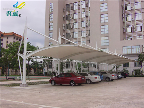 膜結構車棚是眾多的學校、單位、商城場所廣泛應用的車棚,它具備多種優勢,不僅能有效的遮蔽風雨,且整體視覺效果也是非常美觀,不用擔心出現生銹的問題。膜結構車棚的承受力非常強,擁有一定的防火效果,使用起來更為安全。