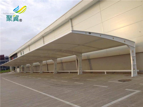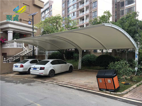 膜結構停車棚的質量:普通膜結構停車棚具有強度高、耐久性好、耐火性好、自潔性好,不受紫外線影響等優勢,且與涂料使用的材料相同,增加使用壽命。