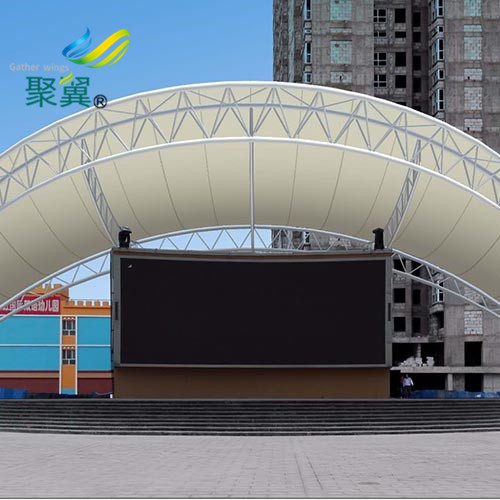 一般來說膜結構景觀棚表面的材料是防紫外線的。了解過都知道膜結構建筑是二十一世紀最具代表性與充滿前途的建筑形式。膜結構建筑打破了純直線建筑風格的模式,以其獨有的優美曲面造型,簡潔、明快、剛與柔、力與美的完美組合,呈現給人以耳目一新的感覺,同時給建筑設計師提供了更大的想象和創造空間。