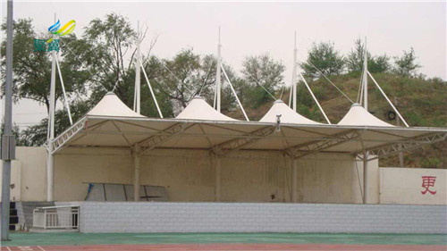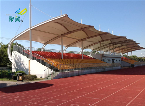 2、膜結構體育看臺造型優美,保養簡單,使用年限也較高,因此較多學校采用膜結構建筑,經濟實惠,也是個學校的建筑物。