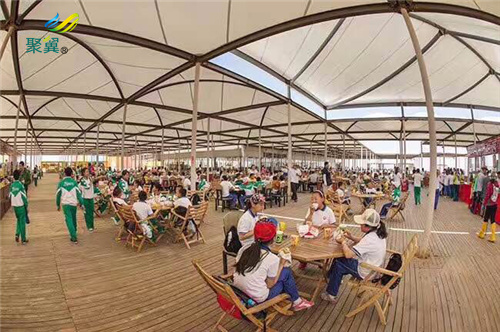 與傳統景觀結構不同,膜結構景觀依賴于高強度柔性膜與剛性張力系統的結合,形成具有強烈景觀形狀的空間結構。在夜晚,隨著照明,它將有一個無與倫比的夢想效果。它給人一種清爽的感覺,因此與普通的景觀建筑相比,它可以為人們提供良好的視覺體驗和感官體驗。
