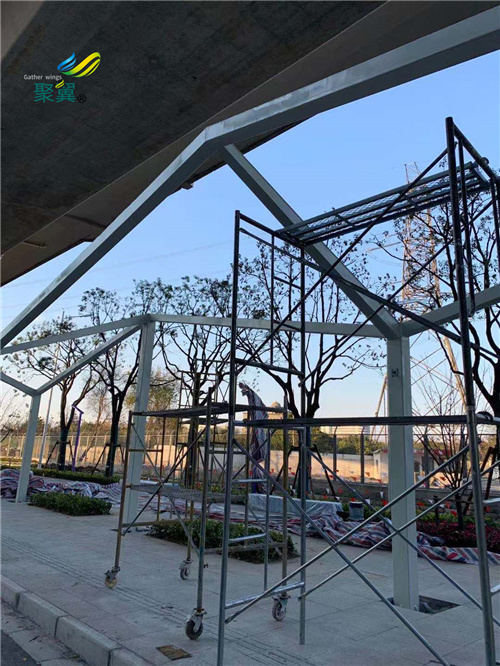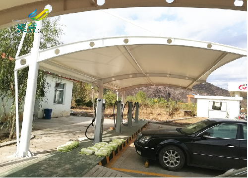 上海膜結構充電樁中鋼索與膜結構的安裝