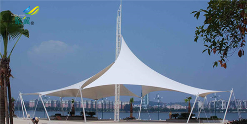 常用膜材主要分為這幾類:PVDF,PTFE,ETFE,以前常用的是PVDF膜材,PVDF膜材相對成本較低,但使用一段時間后容易發黃發黑。PTFE膜材主要應用于一些重要或大型建筑上,如體育館,收費站,展覽館等,PTFE膜材自潔性,因表面是有特氟龍涂層處理,越曬越白,使用壽命25年以上,ETFE膜材最大的特點是透光率高,如水立方。