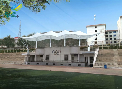 膜結構是一種新型材料,具有藝術性,經濟性,保溫性,自潔性,防火性,吸音性和透光性。膜結構運用于體育看臺能更好的體現膜結構的這一特性。膜結構體育看臺比傳統看臺相比,具有造型優美,空間跨度大,自重輕,使用年限時間長等特點。