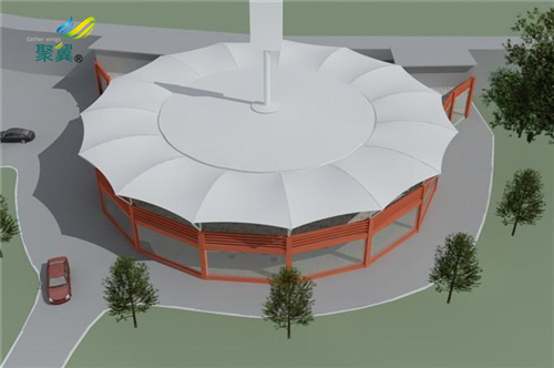 3、膜結(jié)構(gòu)材料的可加工性能、幅寬及膜結(jié)構(gòu)建筑效果圖的膜面形狀等。