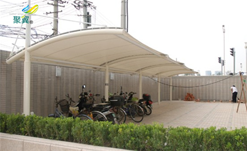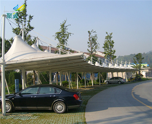 膜結構遮陽棚膜材有較高的反射性及較低的光吸收低,并且熱傳導性較低,這程度上阻止太陽能進入室內。另外,膜材的半透明性保證了適當的自然漫散射光照明室內。