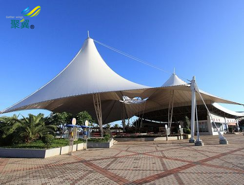 商業(yè)街在城市中占有相當(dāng)大的比重。商業(yè)街的建筑與環(huán)境是城市文明的窗口,代表著物質(zhì)文明和精神文明的水平,同時,也是景觀環(huán)境的重要組成部分。膜結(jié)構(gòu)輕巧別致極具現(xiàn)代化風(fēng)格,且易于安裝移動,在商業(yè)街設(shè)計中得以廣泛應(yīng)用