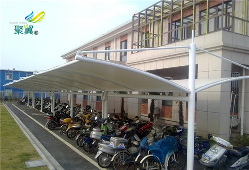 由于對停車棚的要求不斷的提高,具有更好性能的膜材就出現了,而且在加一些比較新的技術,在遇到一些比較極端的天氣的時候,這種結構的車棚的質量能夠使其發揮較好的作用,可以抵抗這種天氣,因此其使用時間較長。