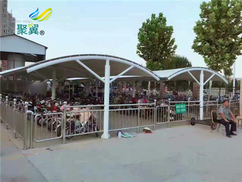 膜結構車棚按其結構形式可分為鋼結構、張拉結構及充氣結構;按膜材特性又可分為長期性膜結構(膜材使用年限可超25年)、半長期性膜結構(膜材使用年限為10-15年)及臨時性膜結構(膜材使用年限為3-5年);按膜材成分又可分為PVDF膜材、PTFE膜材及ETFE膜材。