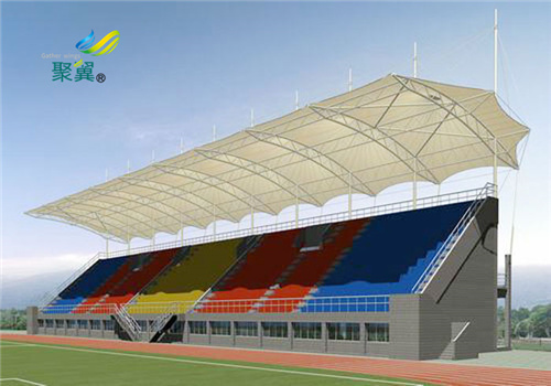 花色眾多好保養,它耐酸堿的侵蝕,下雨雨水洗滌擦干即可。唯一需注意的是,膜材的材質性能不同,功能也相對不同。一般建議,北方應選擇抗拉抗壓強度相對大的,在環境中的相適應。另外,看臺結構也是根據膜材的抗拉性能的另一種選擇,它的抗拉強度決定了它活潑的設計感,甚至能為空間增加變化。