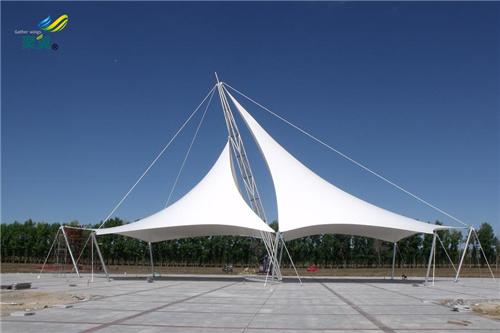 膜結構正常工作首先必須引入適當?shù)念A張力,再就是要形成互反曲面。傳統(tǒng)結構為了減小結構的變形就必須增加結構的抗力;而膜結構是通過改變形狀來分散荷載,從而獲得最小內力增長的。