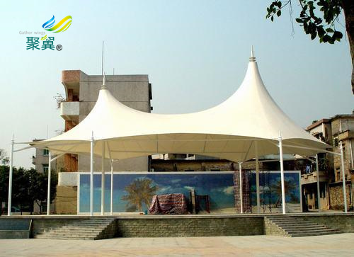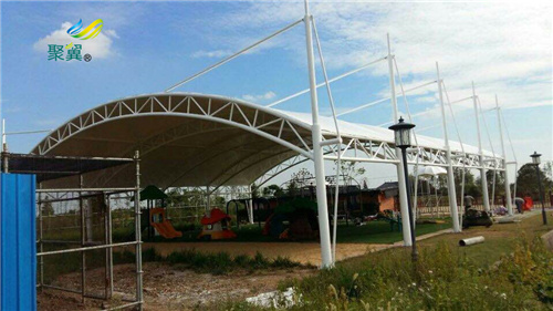 四、膜結(jié)構(gòu)安裝過(guò)程中不應(yīng)發(fā)生雨水積存現(xiàn)象。同時(shí)應(yīng)根據(jù)降雨的程度決定工程的中止和繼續(xù)。
