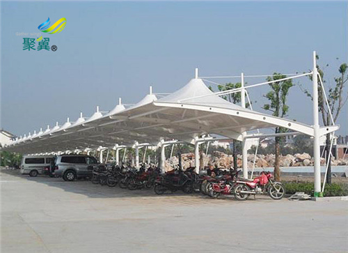 膜結構車棚材料選用了進口膜結構材料,具備很多好的特性:比如耐用、透光性、耐候性、抗沖擊性、阻燃性、耐溫性、隔音性等特點,