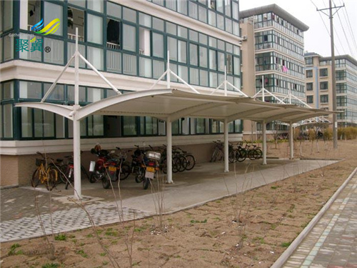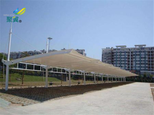 3、我們可以通過韌性和光潔度的膜布材料,來降低受到大風和大雨的阻力,變相的來增加膜結構停車棚的張力,從而增加牢固度。