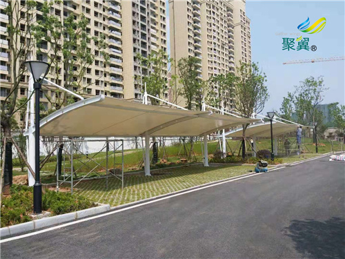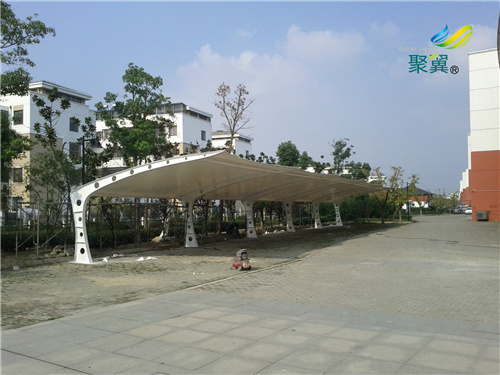 膜結(jié)構(gòu)車棚的安裝包括膜體展開、連接固定和張拉成形三個(gè)部分。除了一般雨棚不可比擬的耐用、實(shí)用、遮風(fēng)擋雨的功能外,膜結(jié)構(gòu)雨棚更是一座雕塑,一件藝術(shù)品,給人和種美的視覺享受。