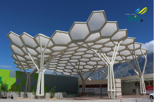 3.膜材本身是環保材料。膜結構使用的膜材是環保材料,可回收利用。膜材的透光性可減少電量使用,亦有助于環保。
