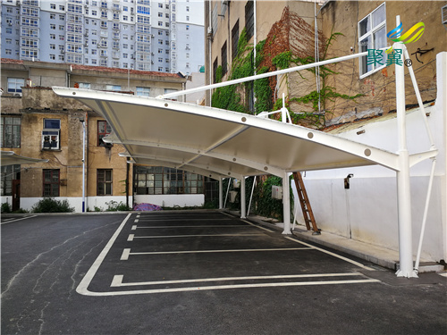 膜結構車棚篷店面專用款式介紹:它具有體積小,調幅大,結構新穎,美觀大方,節能環保的特點。它具有遮陽,擋塵,阻遏熱輻射等成效。從節省能源以及視點考慮,意義非常嚴峻。