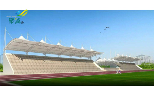 膜結構體育看臺比傳統的建筑形式膜結構體育看臺的優點很多:首先它不僅滿足了造型的多樣性、夸張性,而且也完美的解決了對于大跨度結構用鋼量大的問題,往往對于大跨度的結構來說,起跨度尺寸就代表著需要大量的鋼結構來補足,然而對于膜結構來說,其特有的延展性和超高的的抗拉強度完美的解決了大跨度帶來的困擾,大大的節約了施工成本。