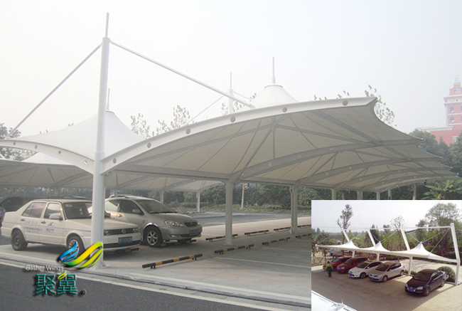 膜結構車棚膜面幅寬。在平面網格劃分和找行分析的過程中,我們就需要考慮到膜材料的幅寬。盡量讓完整的膜單元被包含在同一塊膜布中,否則很難確定出模塊邊界點的位置。