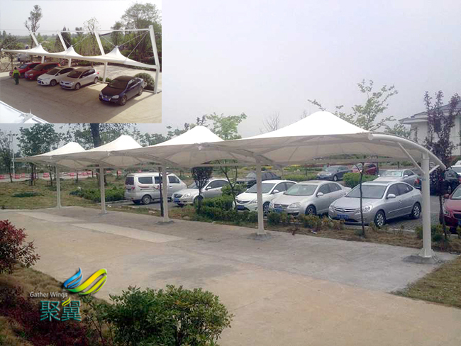 2、檢查膜結構車棚的表面受力情況如有必要進行二次張拉計劃并按計劃實施