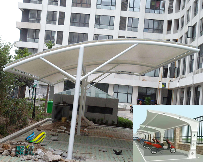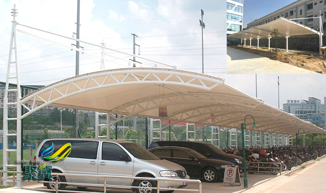 清洗膜結構車棚膜表面時,應用清水或中性清洗劑,不宜用如:汽油、酒精、氯水等酸性或堿性材料液劑清洗。