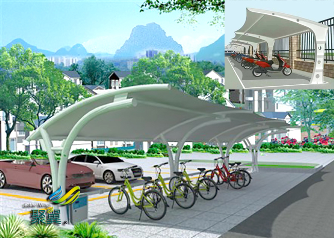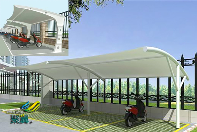 膜結構車棚節點的設計。停車棚要保證其穩定性必須保證其各個連接件之間銜接牢固。如果連接部位不夠牢固的話就很容易導致膜結構車棚膜材與支撐部位失去協調性發生倒塌的現象,因此必須合理設計以及安排停車棚的節點位置,只有保證膜結構車棚各個節點之間都能銜接得當才可以保證膜結構車棚的質量。