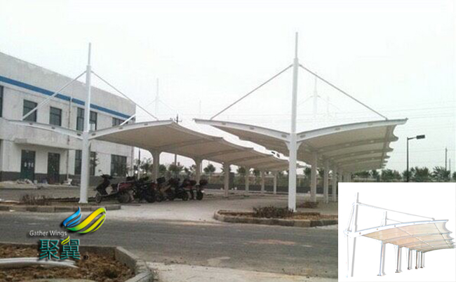 膜結構車棚PVC膜材使用的注意事項:膜結構車棚PVC類膜材一定要防止表面磨損、刮破、刮傷等。膜結構車棚膜材應存放于干燥清潔的場所。不能用溶劑型(如酒精、松香水、丙酮等)清潔劑清洗膜材。清潔灰塵時,用干凈的冷水或熱水沖洗,然后用干布擦干或用風吹干。