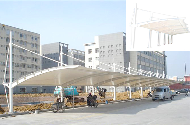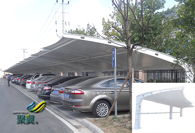 如今隨著人們的生活條件越來越好,購買小車的人也越來越多,然而汽車的停車位卻是個比較困擾的難題。一些小區的地下停車車位不夠,而小區業主的汽車又比較多。因而只好停在路邊或者是小區內,都是露天存放的形式,汽車容易受到風雨的侵蝕,這就需要一個膜結構車棚為汽車遮風擋雨了。