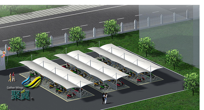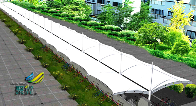 膜結構車棚和自行車停車棚都屬是車棚,也同樣都是用膜結構車棚膜材料產品來制作的,但是他們兩個從名稱和用途上來講是兩個完全不一樣的東西。