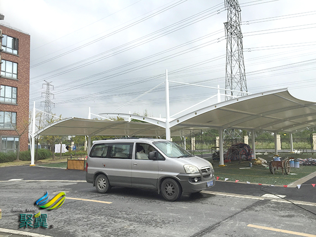 膜結構車棚富時代氣息|電動膜結構車棚