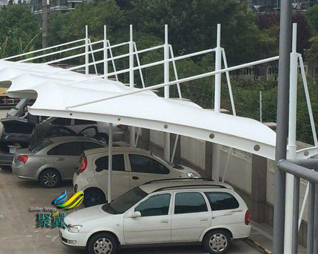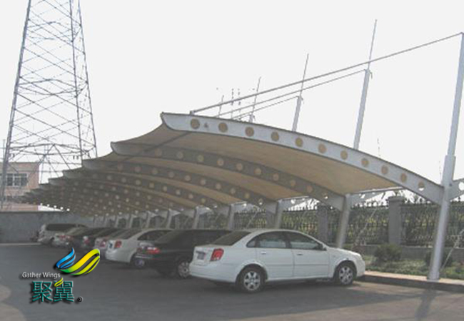 膜結構車棚建筑大跨度:重量輕,膜結構車棚可以從根本上克服傳統結構在大跨度(不支持)實現建筑的困難,能夠創造一塊巨大的視覺空間,膜結構車棚有效地提高空間使用面積,膜結構車棚可以抵御風,雪,地震災害。