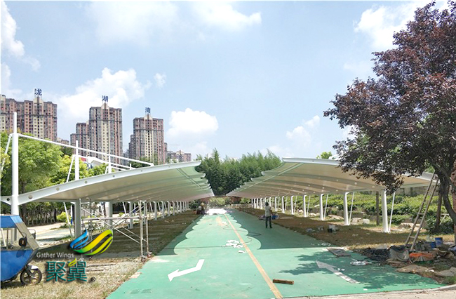 新建的膜結構車棚除能夠滿足防風雨、防日曬等基本功能外,更能真正呵護車輛,減緩車輛的老化速度,越長車輛的使用壽命,更是華麗公司一座雕塑、膜結構車棚一道亮麗的風景線。