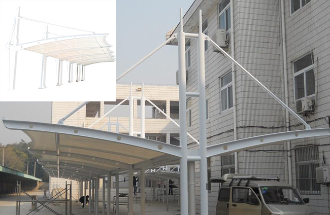 膜結構車棚自行車棚這種戶外的設施要有一定的抗風性,像這種膜結構車棚膜材也十分能適應這種環境,通過試驗發現,像這種膜結構車棚膜材的抗風能力*高達到十一級。