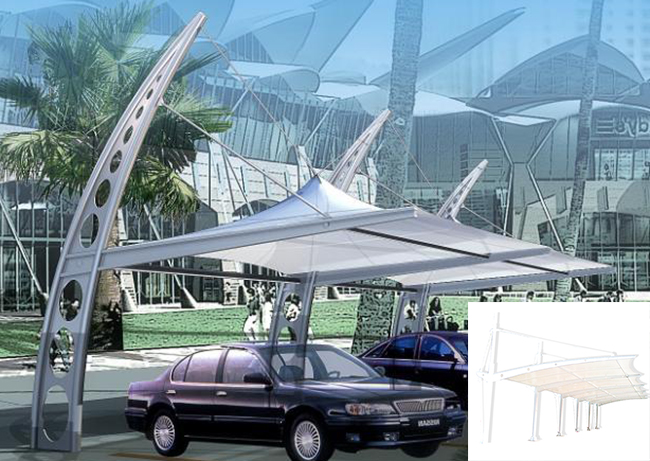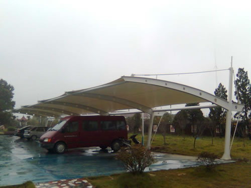 膜結構車棚所使用的結構形式,不但可以用在建造體育場上,還能用在購物中心上,就連展覽會場和走廊里都能用到,使用范圍非常廣泛。