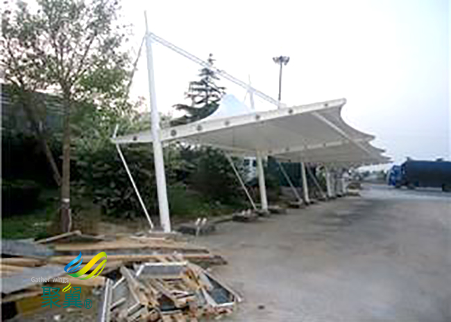 膜結構車棚科技水平的提高,所以我們對任何事物的要求標準也越來越高,不管是物質,亦或者是精神方面都發生了極大的變化。那行走在道路上的車輛總得有遮風擋雨的地方吧,所以膜結構車棚隨之產生了。