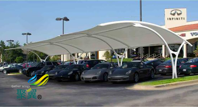 膜結構車棚所使用的結構形式,不但可以用在建造體育場上,還能用在購物中心上,就連展覽會場和走廊里都能用到,使用范圍非常廣泛。