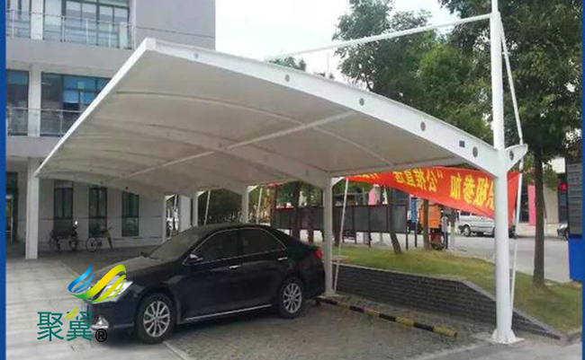 膜結構車棚耐用:由于高強度的膜材出現,再加上張拉技術的應用,使膜結構車棚抵御風雨的能力是一般雨蓬之類不可比擬的。