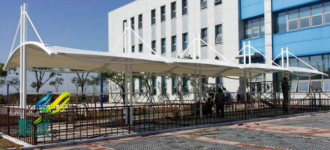 膜結構車棚藝術性:除了一般雨蓬不可比擬的實用、耐用、遮風擋雨的功能外,膜結構車棚雨蓬更是一座雕塑,一件藝術品,給人美的視覺享受。膜結構車棚柔美,膜結構車棚曲線,其剛柔并濟,其豐富造型,膜結構車棚潔白無瑕,讓人眼前一亮,回味悠長。
