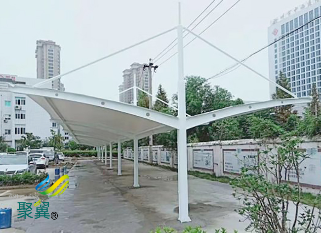 膜結構車棚是提供給車輛停泊的地方,使車輛避免了風吹雨打。在膜結構車棚未出現之前,市場主要的是鐵制車棚,鋁合金車棚,彩鋼車棚等。