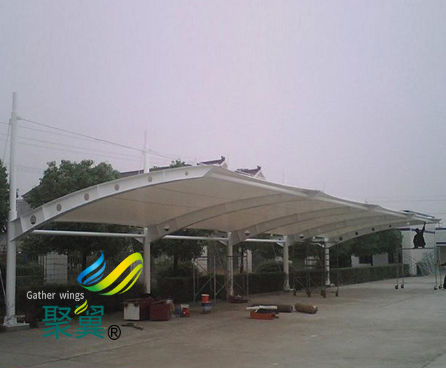 高科技新型資料的膜結構車棚首要應用于大型的體育館、劇院、博物館等大型的展覽館,在外形上比較新穎,膜結構車棚漂亮程度能抵達一定的作用。