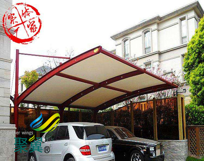 膜結構車棚PVC膜材一般采用表面涂層的處理方法把容易揮發的添加劑密封在膜結構車棚膜材體內,以此保持膜結構車棚PVC的柔韌性,增強壽命。