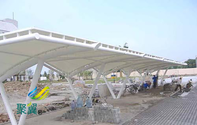膜結構車棚PVC膜材使用的注意事項:膜結構車棚PVC類膜材一定要防止表面磨損、刮破、刮傷等。膜結構車棚膜材應存放于干燥清潔的場所。膜結構車棚膜片,膜材裁剪后形成的單元。膜結構車棚預張力,以機械或其他方法,預先施加于拉索或膜片上的力。