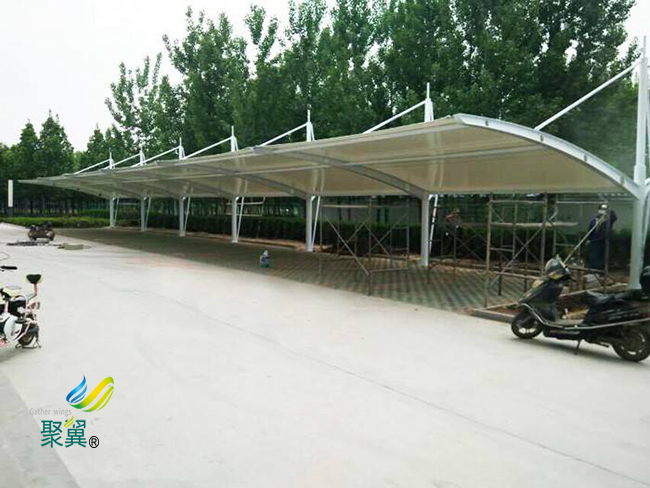 能源消耗低,膜結構車棚能夠保證適當的自然光散漫在室內,因為膜結構車棚的的反射性較高和光吸收性較低。 更大的建筑空間,膜結構車棚的重量輕、可以不需要內部支撐面就能夠實現大跨度的覆蓋,目前在學校、政府、住宅等地方有著**廣大的應用。 膜結構建筑在我們的日常生活中運用的*廣泛,膜結構停車棚更是為我們的愛車提供了**好的停車場所,材料不同的膜結構建筑業就由了不同的屬性。