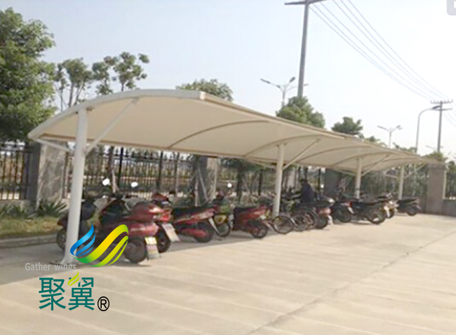 膜結構車棚具有極好的透光效果,透光率可達30%,而其他類型的產品一般來說透光率可以說是極差的存在,致使膜結構車棚會因為長期暴曬二變黃損害,而膜結構車棚透光率就確保了不會出現這樣的問題,從側面可以看出膜構造的膜結構車棚使用的壽命要更加的長久。 膜結構車棚相較傳統車棚更環保,膜材的使用可以減少空間用鋼量,減少二次污染,其施工現場減少沙、石料、膜結構車棚鋼結構焊接等用量,施工現場要保持環保,同時膜結構車棚進現場后只需漲拉就位,施工速度很快。
