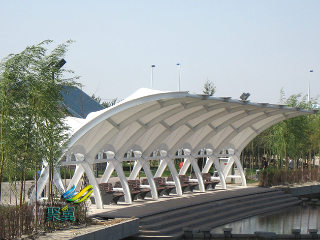 根據(jù)這個現(xiàn)狀研發(fā)出了新型的膜結構車棚產(chǎn)品,在滿足外觀美觀的條件下,也能保證膜結構車棚抗老化,抗黃變,抗化學品,耐腐蝕,能抵御12級強臺風的沖擊,能99%過濾紫外線,設計使用壽命長達20年以上。