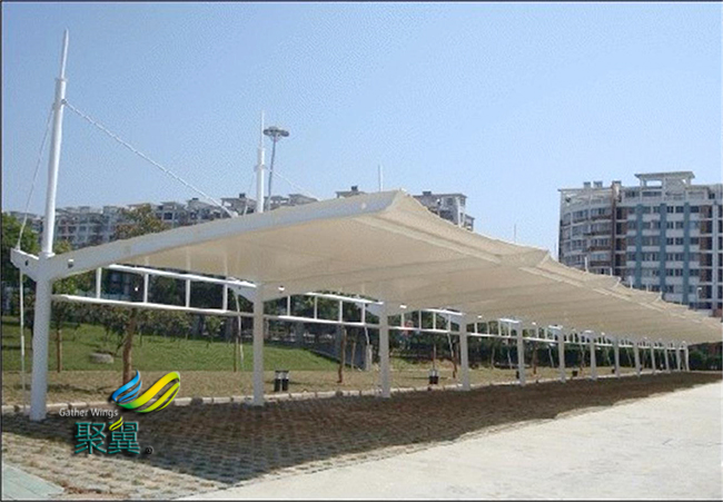 膜結構車棚外表預處理的清潔度和粗糙度、涂裝環境溫度和濕度、兩次涂裝的時刻距離、涂層的厚度等。其間清潔度和粗糙度可依照規范圖譜進行查看,涂層的厚度通過測厚儀測得。