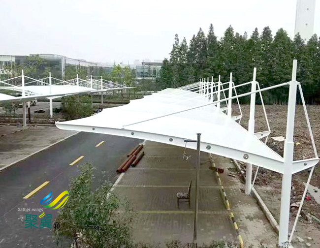 膜結構車棚施工周期短:索膜結構的施工周期與傳統建筑方式相比至少可縮短一半;一般項目均可在三個月內竣工,膜結構車棚部分鋼構件及相關材料可直接在加工廠完成。