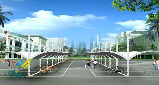 膜結構車棚的使用時間也*長,像這種骨架的*長壽命可以達到三十年以上,正是因為膜結構車棚有這樣的優勢,適合長久性自行車棚的搭建。